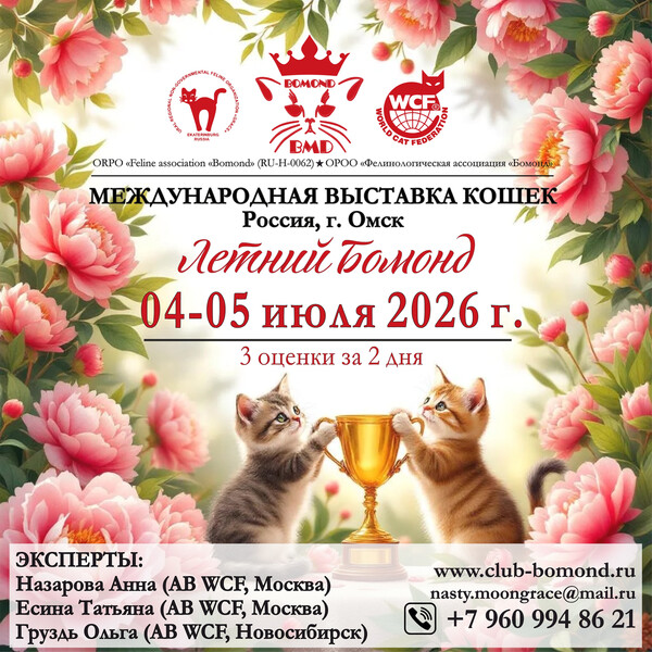 Международная выставка кошек "Летний Бомонд - 2026"